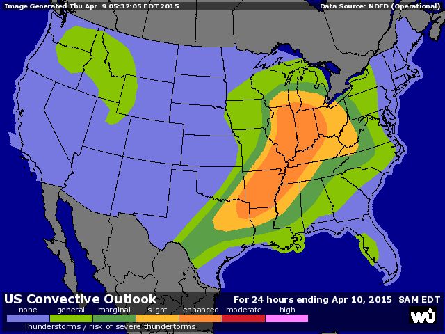 ..there is a slight risk of severe thunderstorms across parts of the Southern